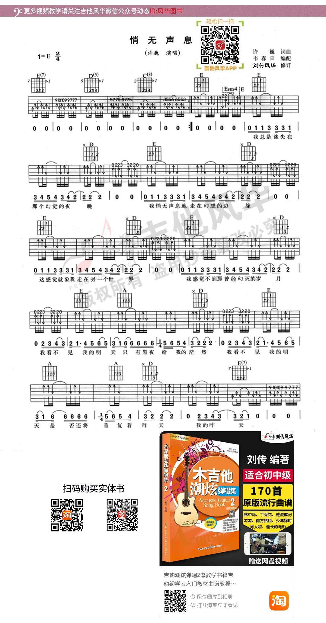 许巍《悄无声息》吉他弹唱谱选自《吉他爱好者》第一集
