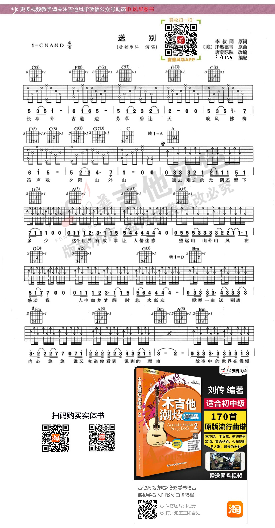 唐朝乐队《送别》吉他弹唱谱选自《吉他爱好者》第一集