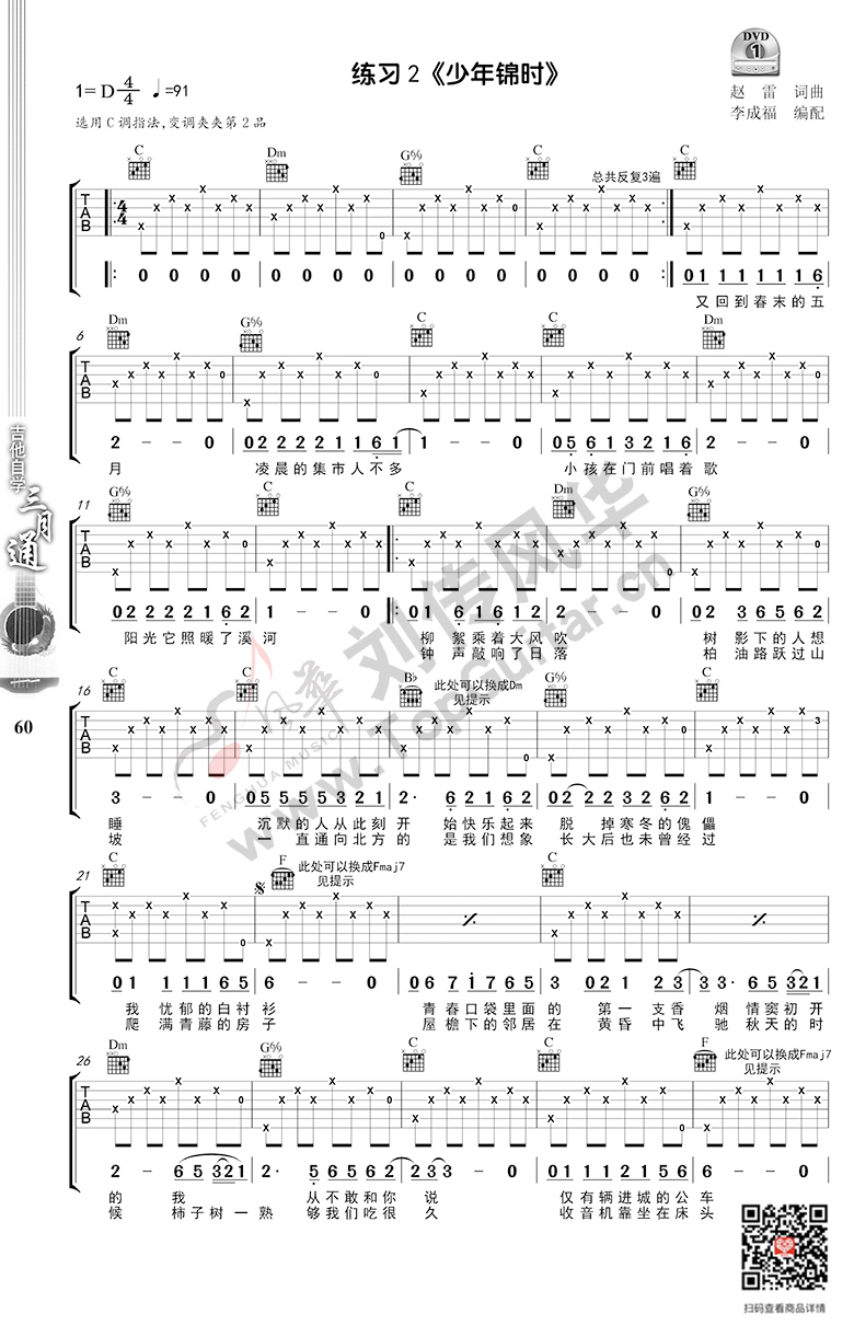 少年锦时 吉他弹唱谱 选自《吉他自学三月通》
