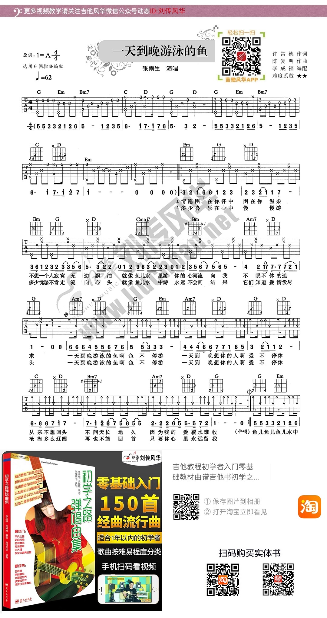 张雨生《一天到晚游泳的鱼》吉他弹唱谱选自《初学之路弹唱曲集》