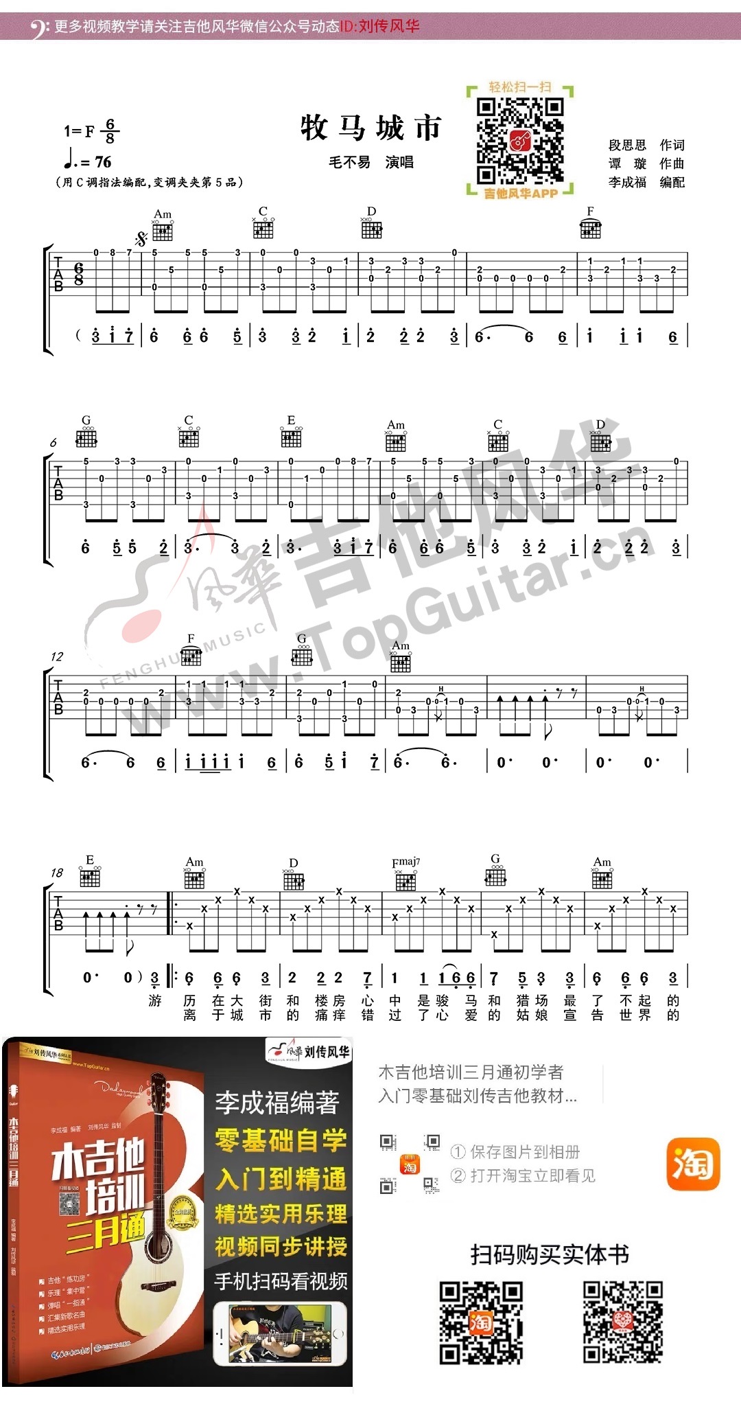 毛不易《牧马城市》吉他弹唱谱选自《木吉他培训三月通》