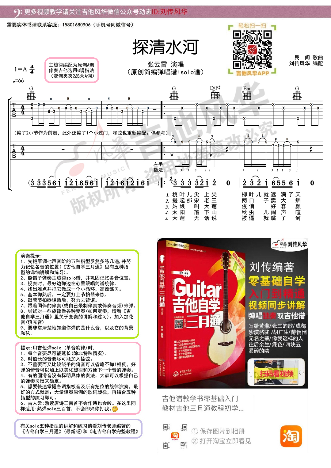 张云雷《探清水河》solo谱A调+C调(双吉他示范)+低把位solo谱D调+双吉他谱+弹唱谱+简谱+音阶图+指法