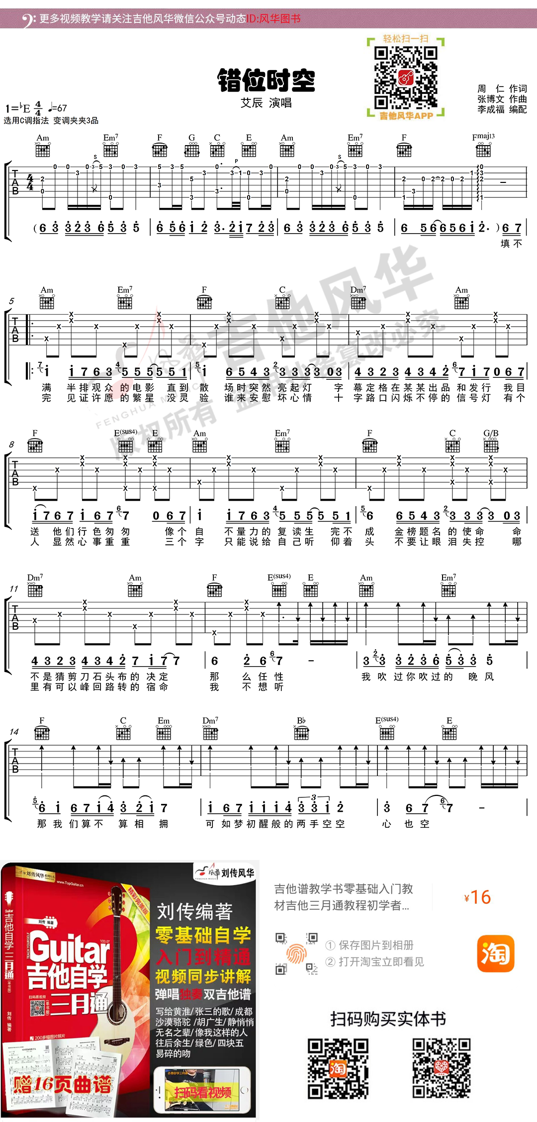 艾辰《错位时空》原版吉他谱示范+讲解
