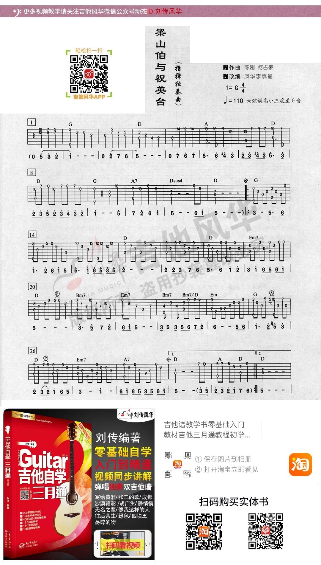 《梁山伯与祝英台》指弹吉他独奏曲选自《吉他爱好者》第十四集