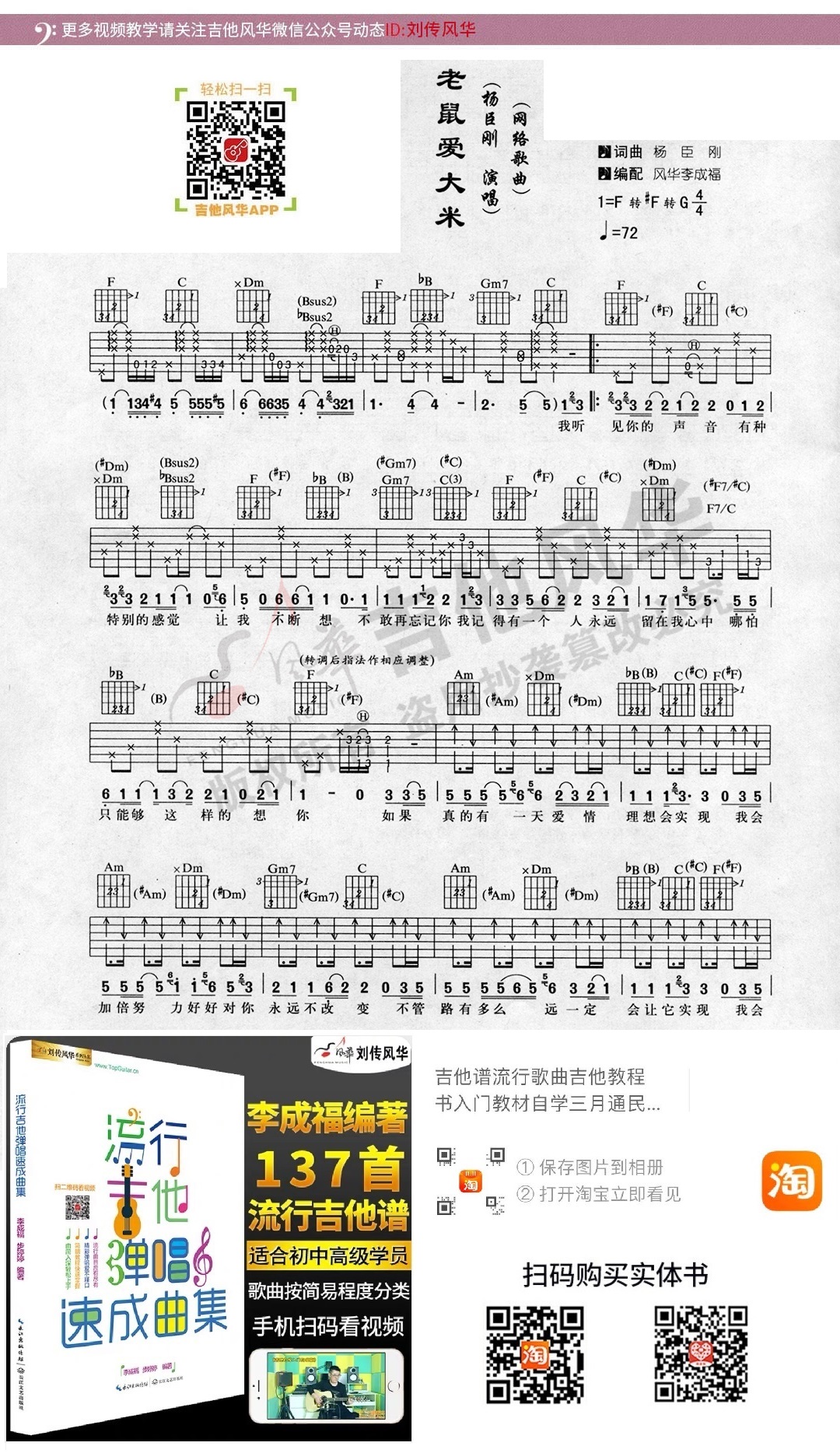 杨臣刚《老鼠爱大米》吉他弹唱谱选自《吉他爱好者》第十五集