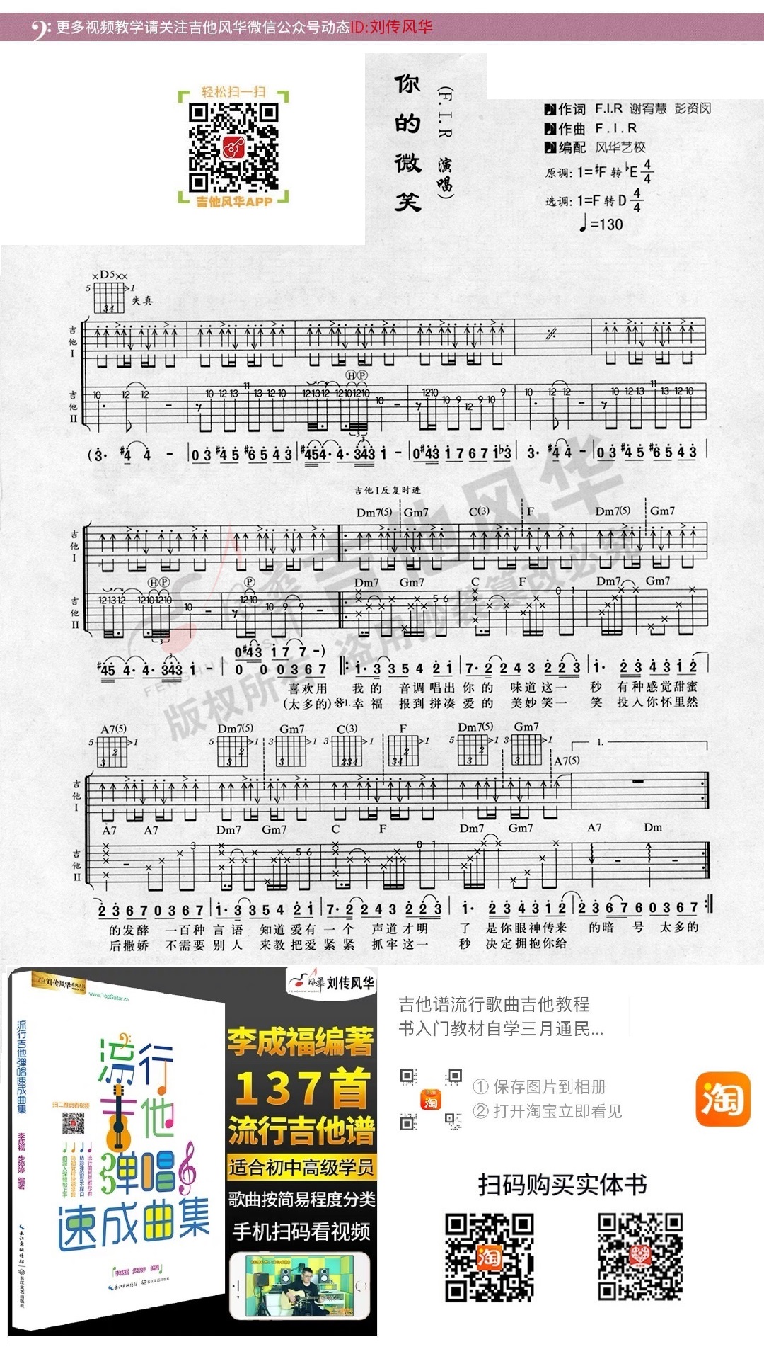 飞儿乐团《你的微笑》吉他弹唱谱选自《吉他爱好者》第十五集