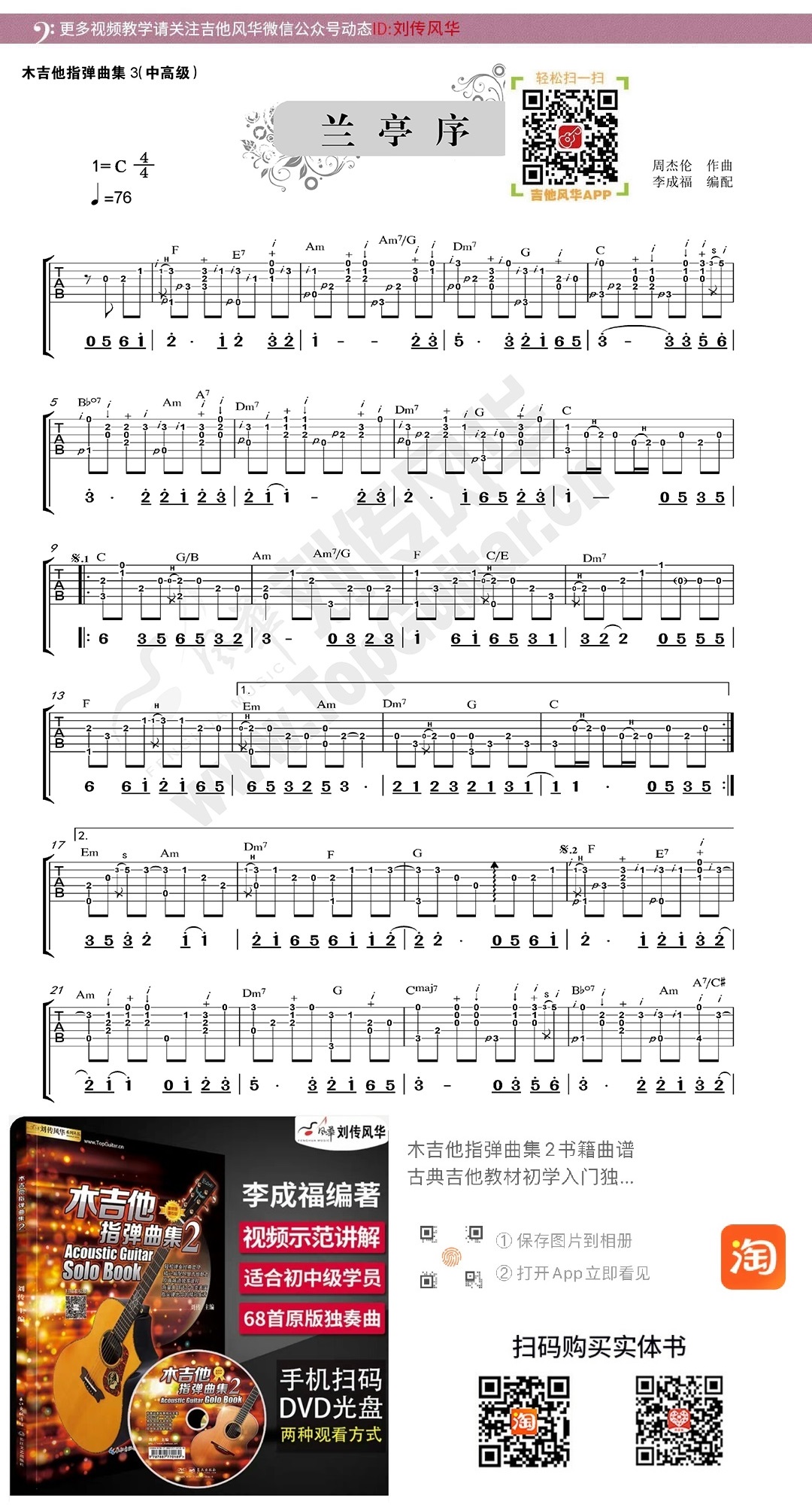 《兰亭序》吉他指弹独奏曲——《木吉他指弹曲集3》