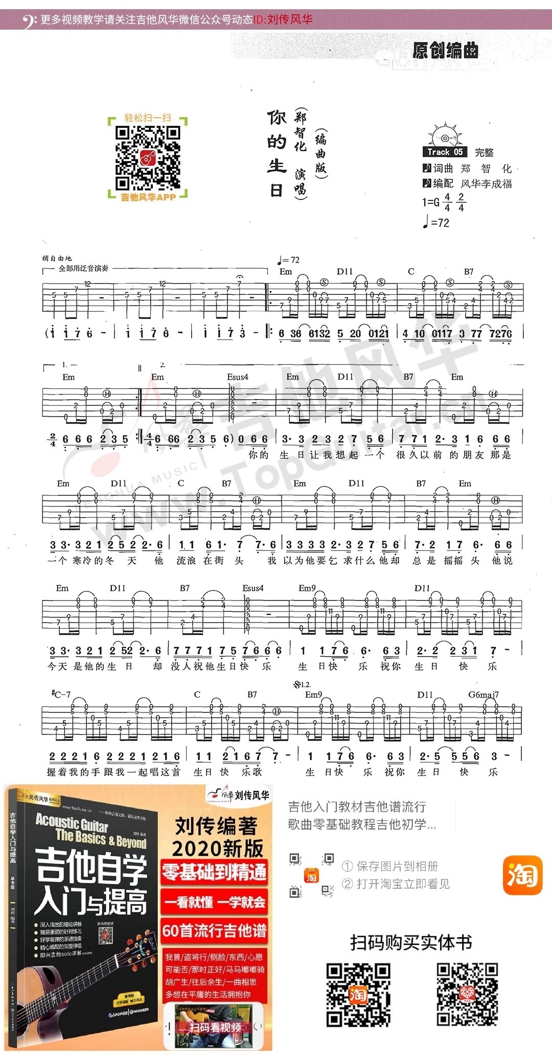 郑智化《你的生日》吉他弹唱谱选自《吉他爱好者》第十六集