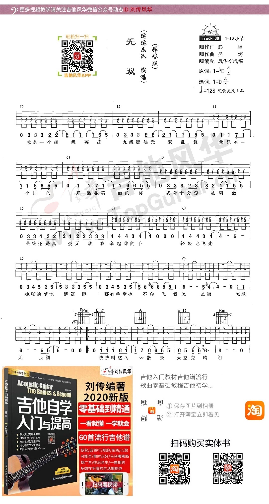 达达乐队《无双》吉他弹唱谱选自《吉他爱好者》第十六集