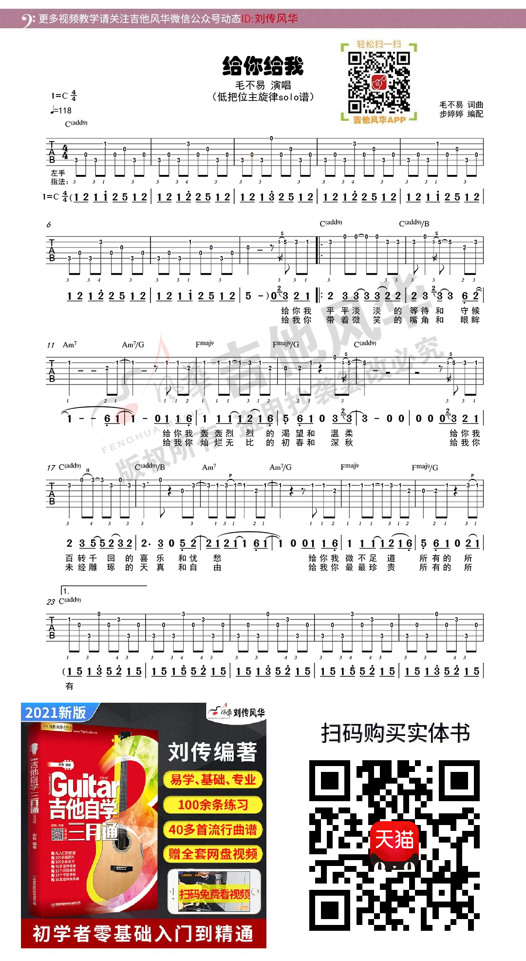 毛不易《给你给我》低把位solo谱C调