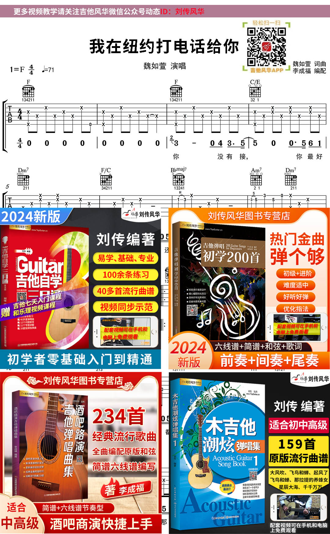 《我在纽约打电话给你》原版吉他谱示范+讲解