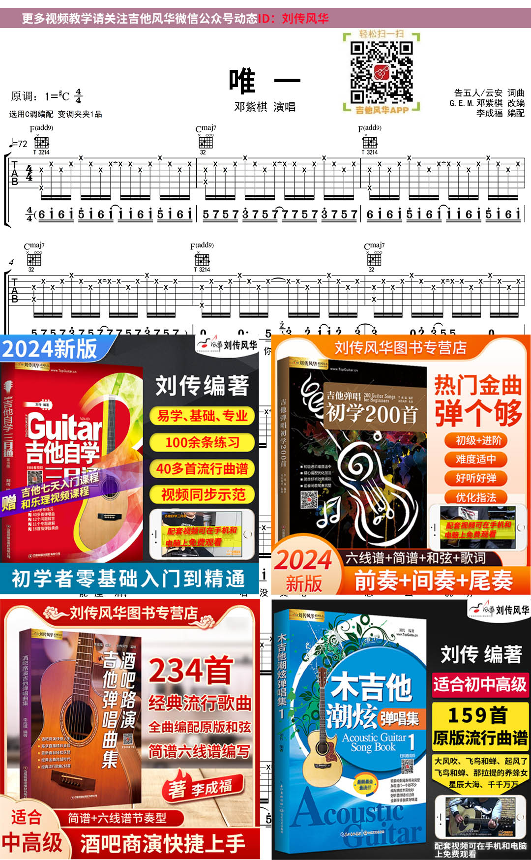 邓紫棋《唯一》原版吉他谱示范+讲解