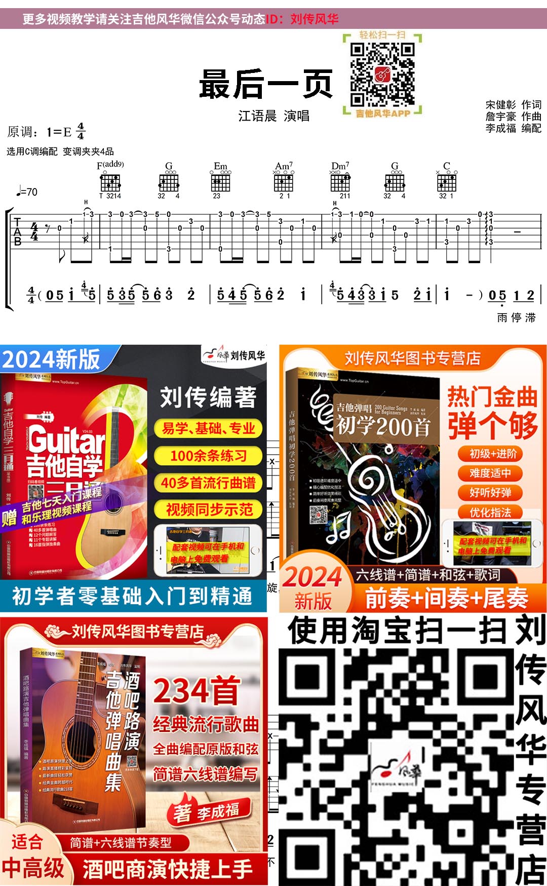 《最后一页》原版吉他谱示范+讲解