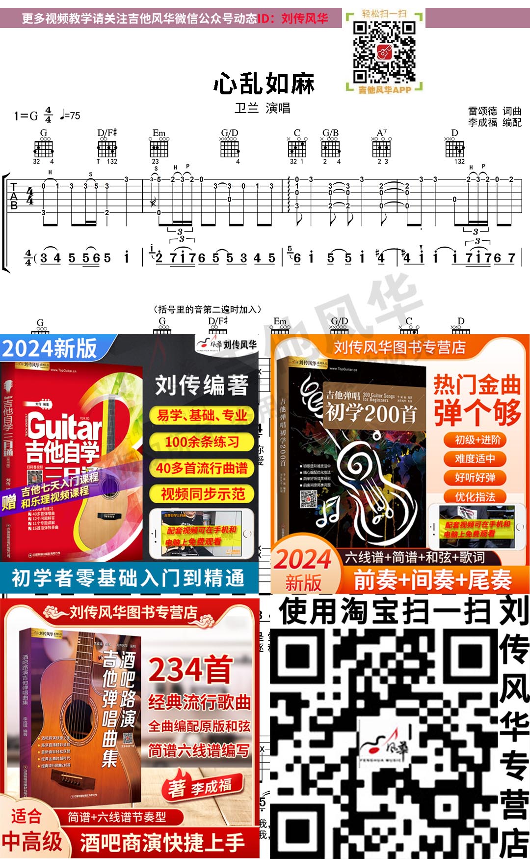 卫兰《心乱如麻》原版吉他谱示范+讲解