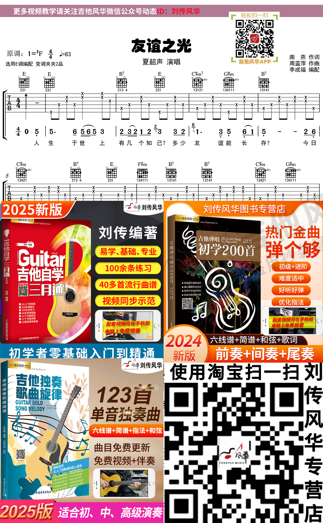 《友谊之光》烟嗓版原版吉他谱+高清示范