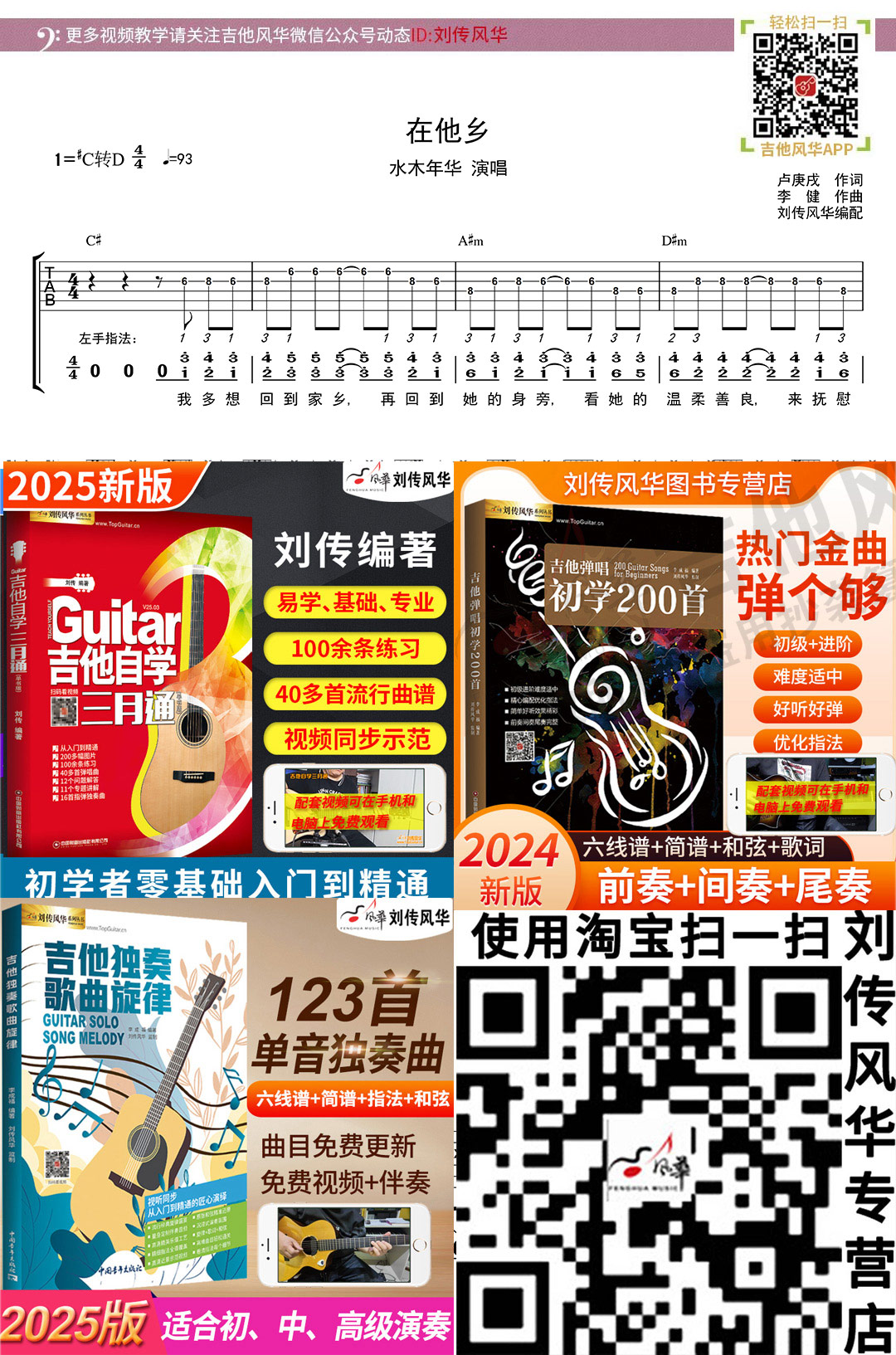 木吉他单音独奏曲六线谱《在他乡》