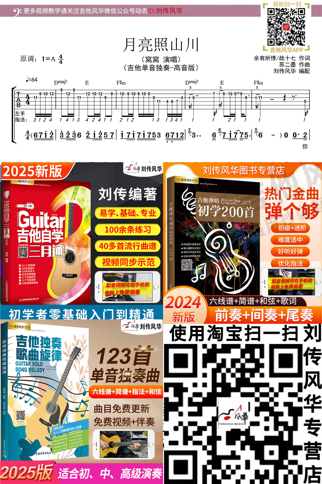 木吉他单音(高音版)独奏曲六线谱《月亮照山川》