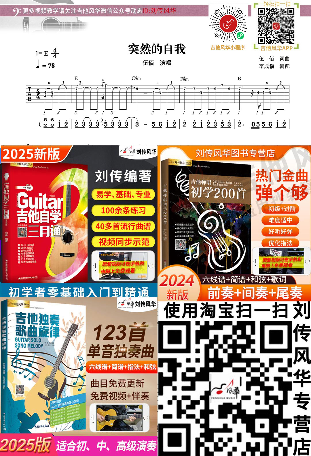 木吉他旋律独奏六线谱《突然的自我》