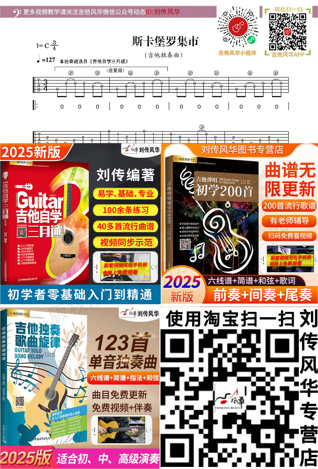 风华群友赵振双吉他演奏《斯卡保罗集市》曲谱选自《吉他自学三月通》
