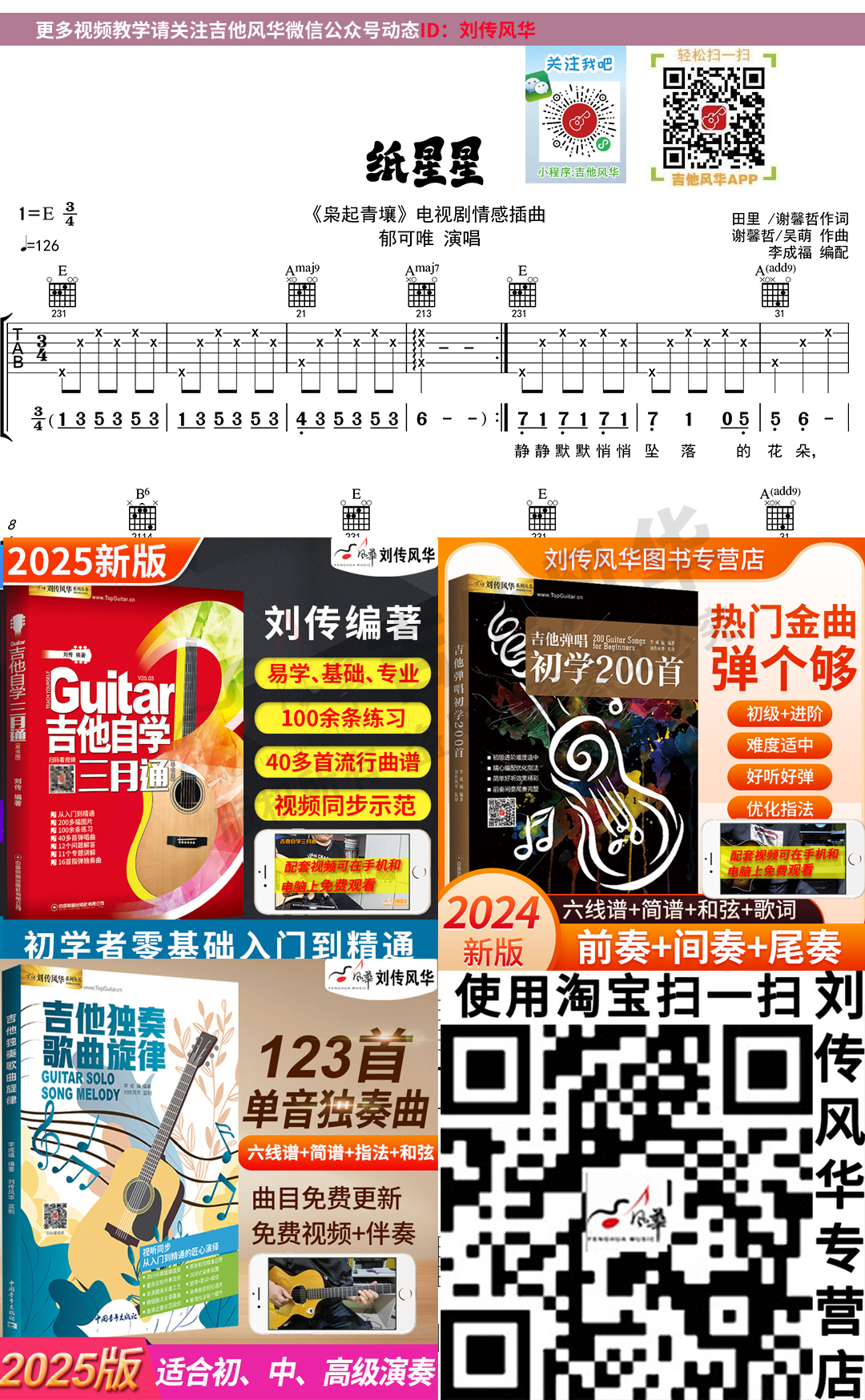 郁可唯《纸星星》原版吉他谱示范+讲解 V:jita-fenghua免费辅导
