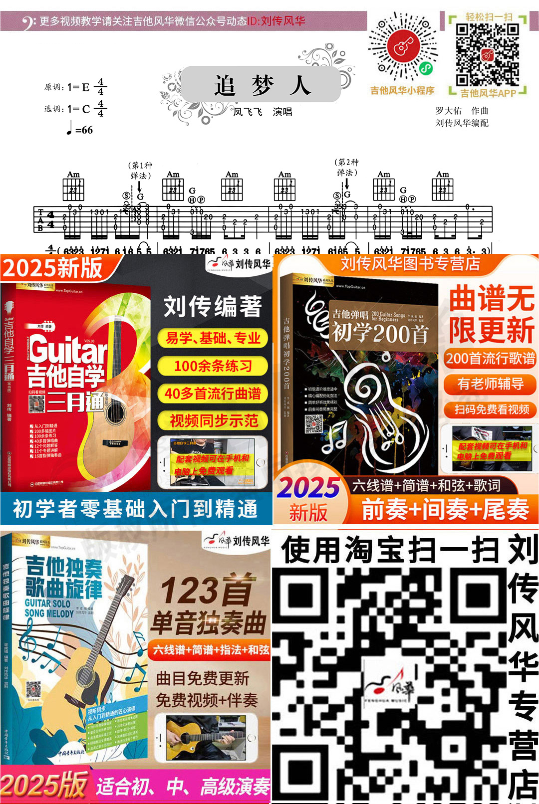 风华网友拥抱明天吉他独奏《追梦人》,曲谱选自《木吉他指弹曲集2》