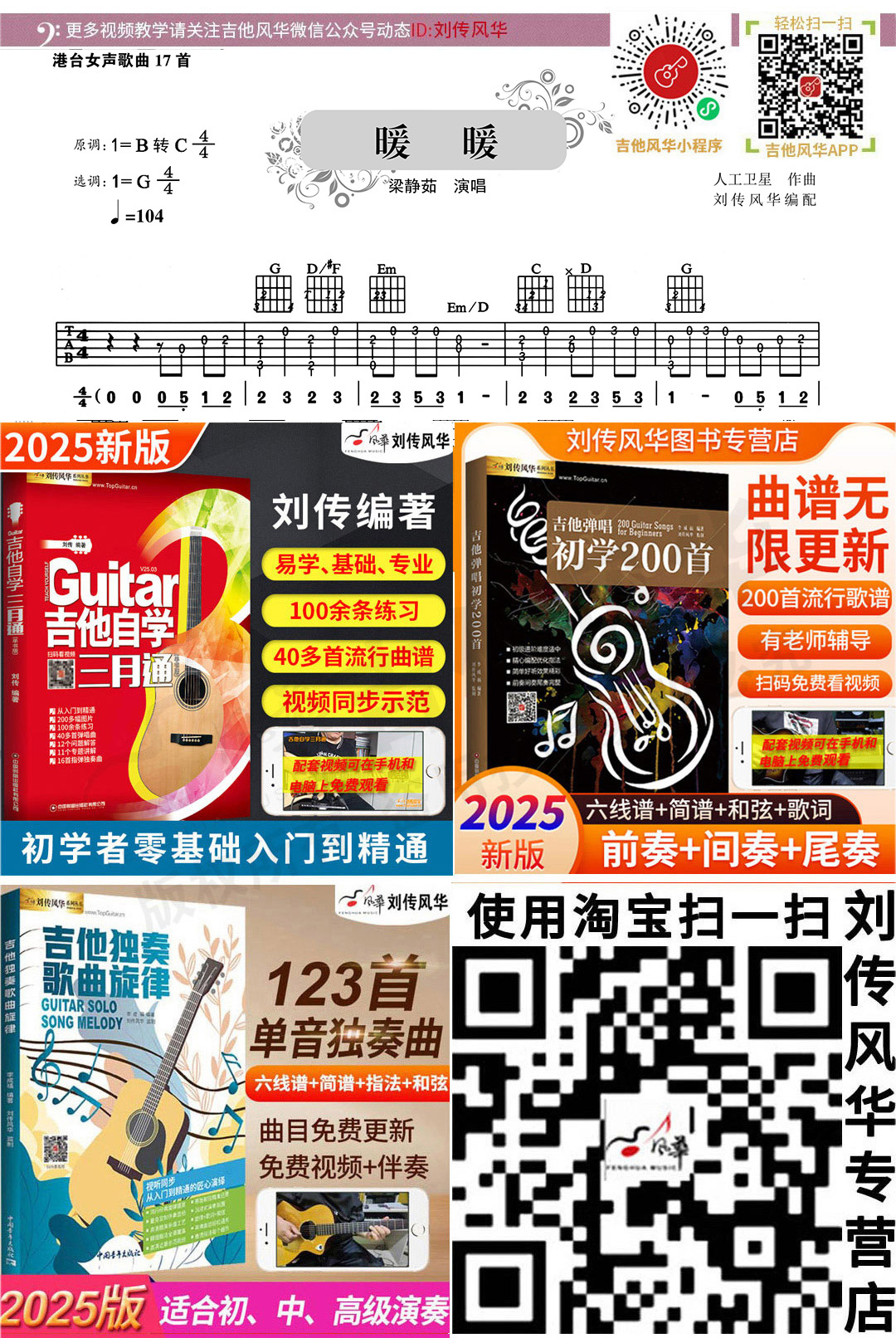 风华群友sunflower吉他独奏《暖暖》曲谱选自《木吉他指弹独奏曲谱集1》