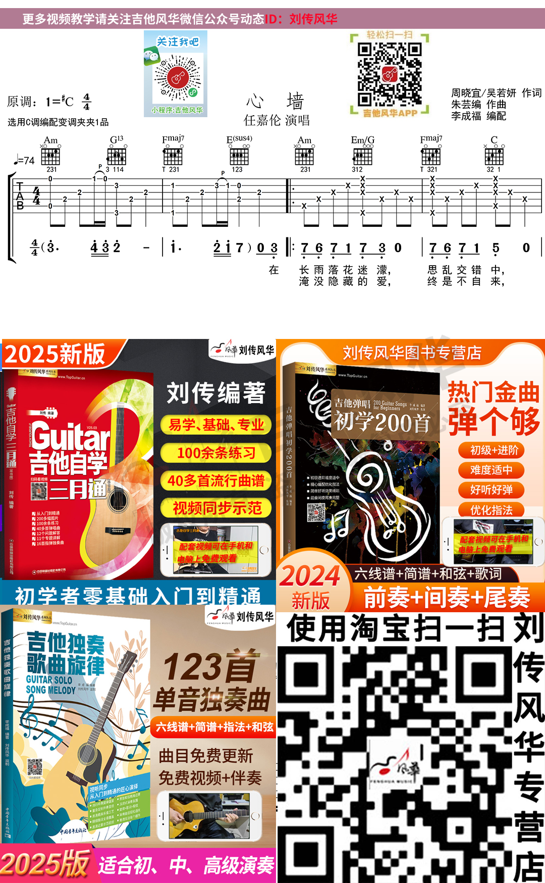 任嘉伦《心墙》原版吉他谱示范+讲解