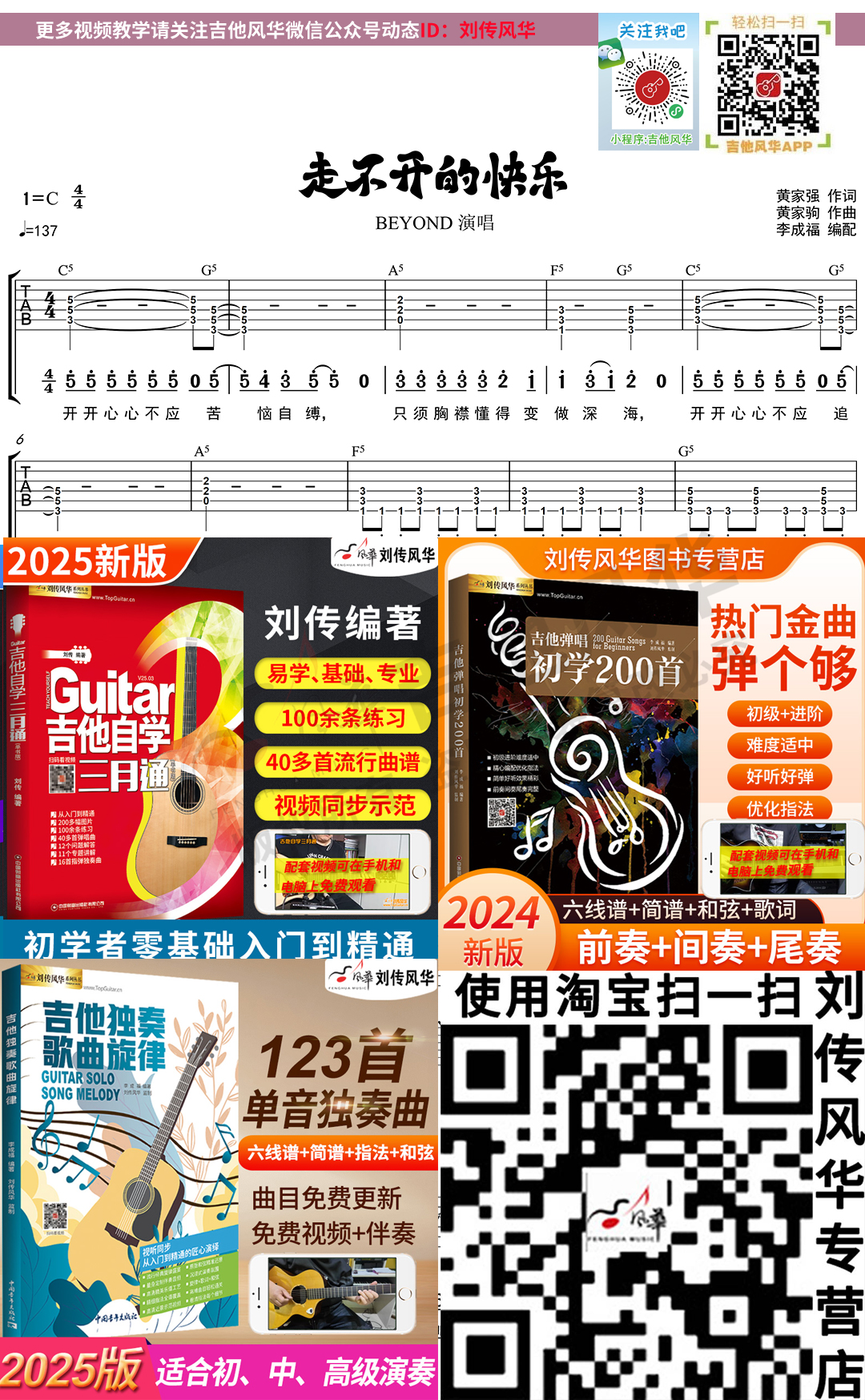 BEYOND《走不开的快乐》原版电吉他谱高清示范