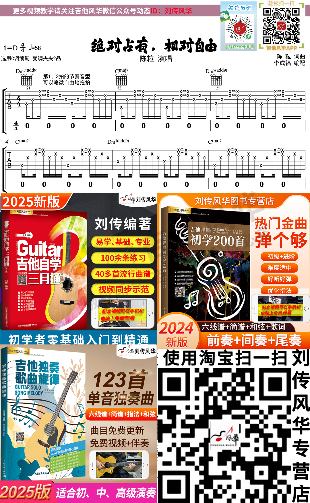 陈粒《绝对占有,相对自由》原版吉他谱示范+讲解