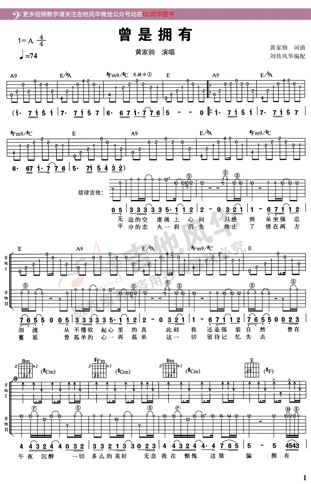 曾是拥有-solo谱A调+双吉他谱+贝斯谱+弹唱示范+伴奏
