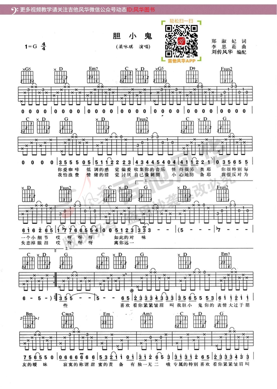 梁咏琪《胆小鬼》吉他弹唱谱选自《吉他爱好者》第一集