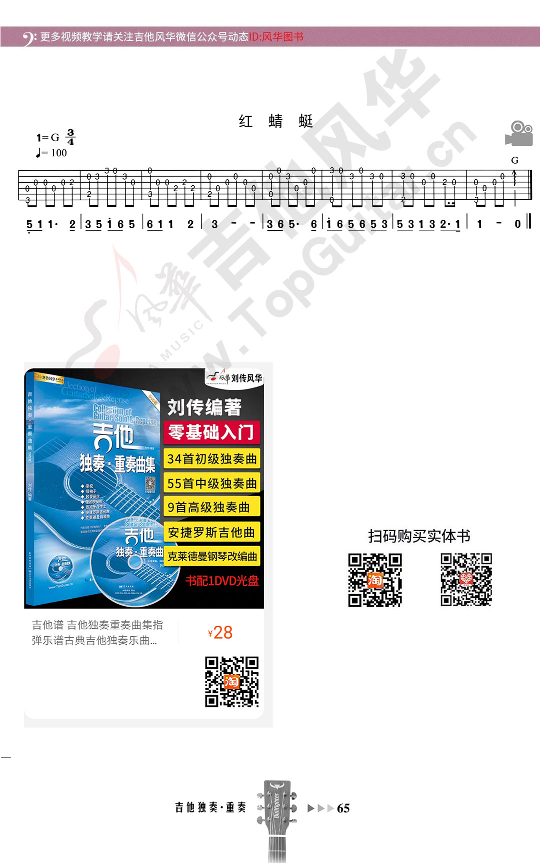 吉他独奏重奏曲集连载8:初级练习曲(A)红蜻蜓